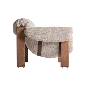• Sillón Uznach de estilo contemporáneo fabricado en madera de caucho en color marrón combinado con poliéster en color beige con acabado jaspeado y espuma.