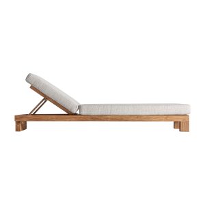 • Tumbona pure de estilo colonial fabricado en madera de teka reciclada en color marrón con acabado natural combinado con polipropileno reciclado en color beige y espuma. Producto desmontable plegable desenfundable.