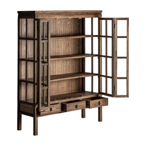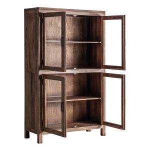 • Vitrina Tartu de estilo colonial fabricado en madera de olmo en color marrón.