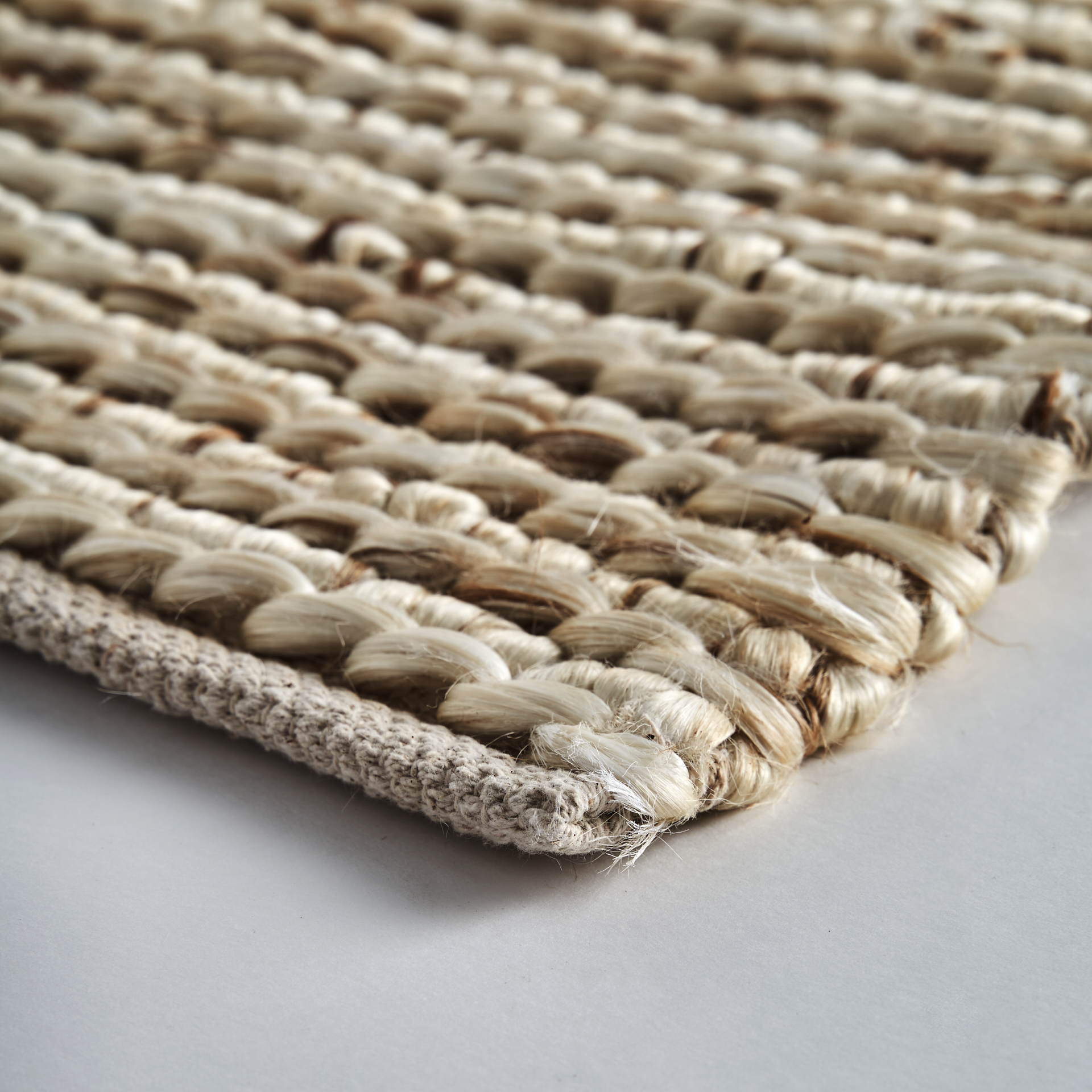 Alfombra Beryl de estilo clásico fabricado en yute en color beige combinado con algodón y fibra natural.