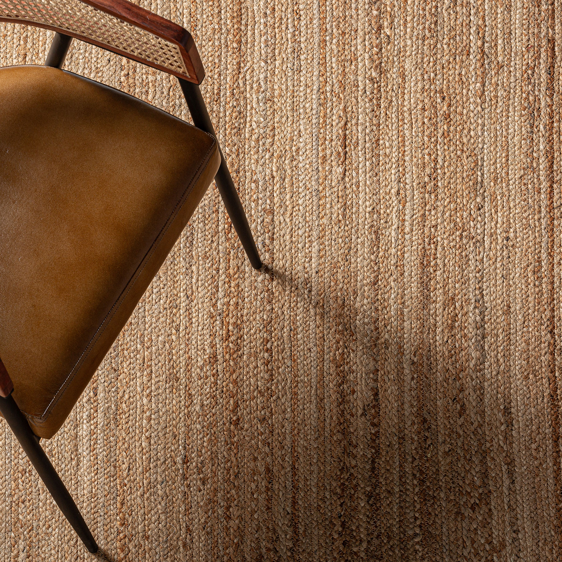 Alfombra nalah de estilo boho fabricado en yute en color tonos en marrón combinado con algodón.