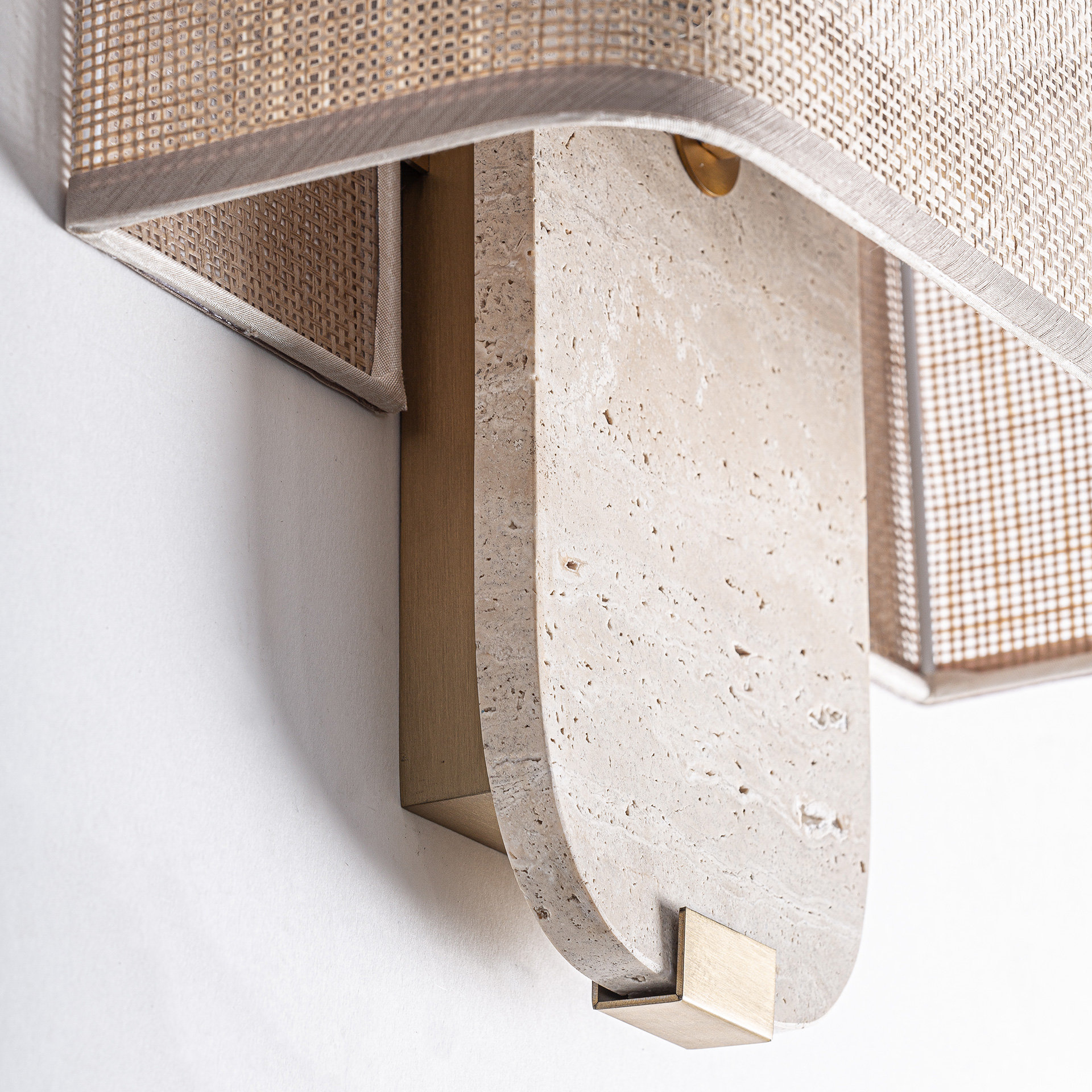 Aplique Absco de estilo art deco fabricado en mármol en color beige combinado con hierro en color plata y poliéster en color beige.