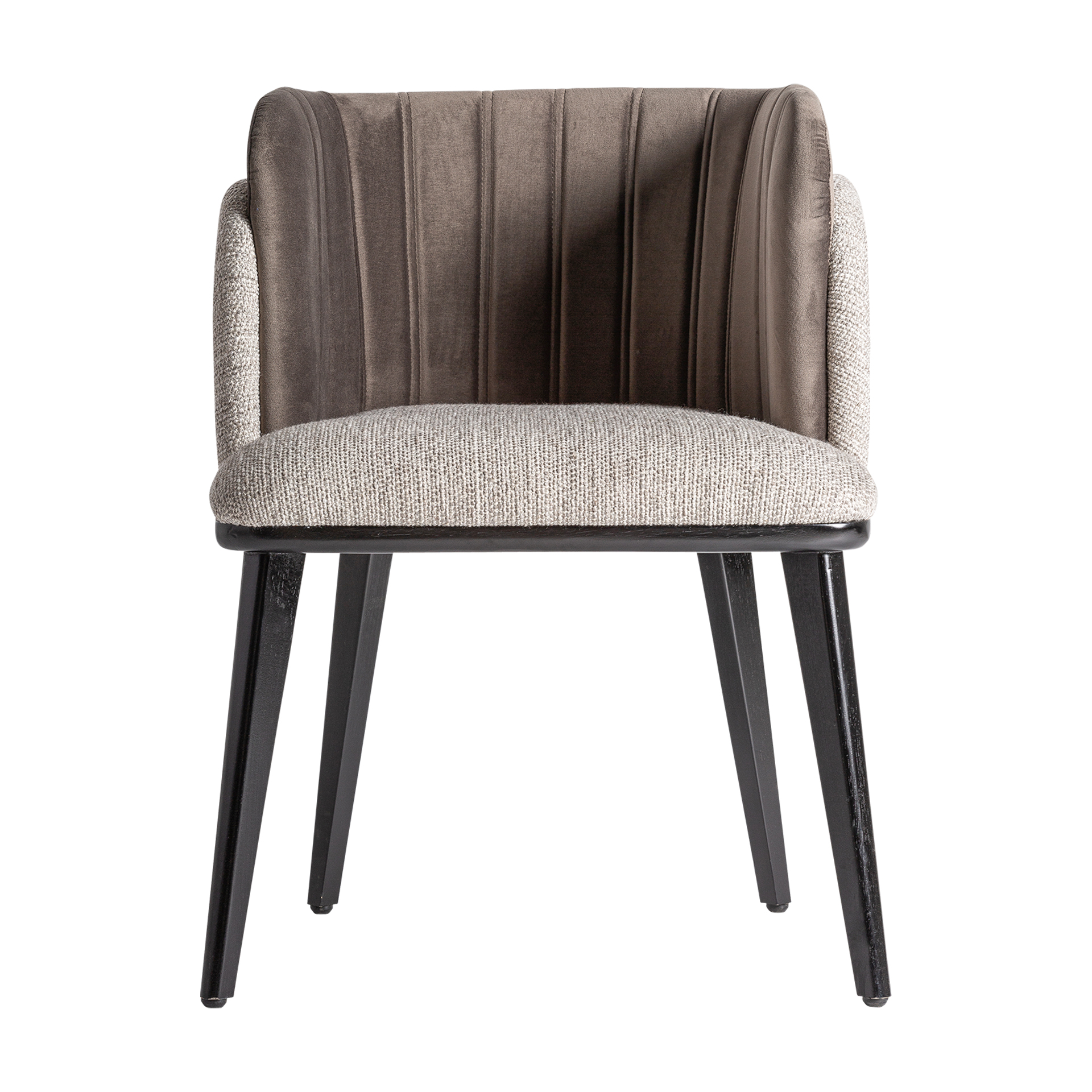 Silla labege de estilo contemporáneo fabricado en madera de caucho en color gris combinado con poliéster en color gris con acabado jaspeado y terciopelo en color negro.