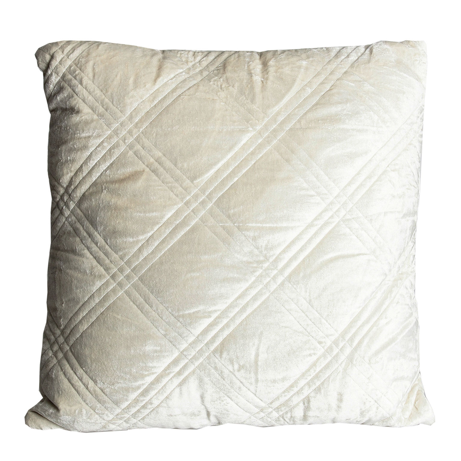 Cojín Ahren de estilo provenzal fabricado en viscosa en color blanco roto combinado con algodón. 65% viscosa 35% algodón.