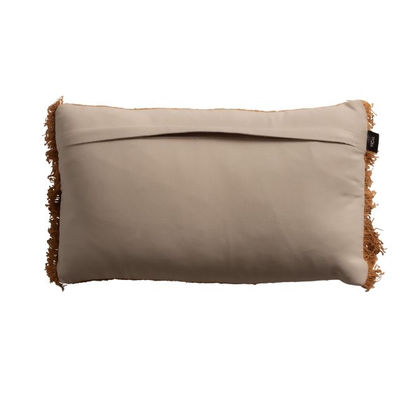 Cojín gorane de estilo clásico fabricado en algodón en color beige combinado con lino en color marrón y guata sintética.