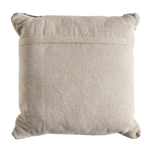 Cojín Mittet de estilo boho fabricado en lana en color tonos claros combinado con yute y algodón. Producto desenfundable.