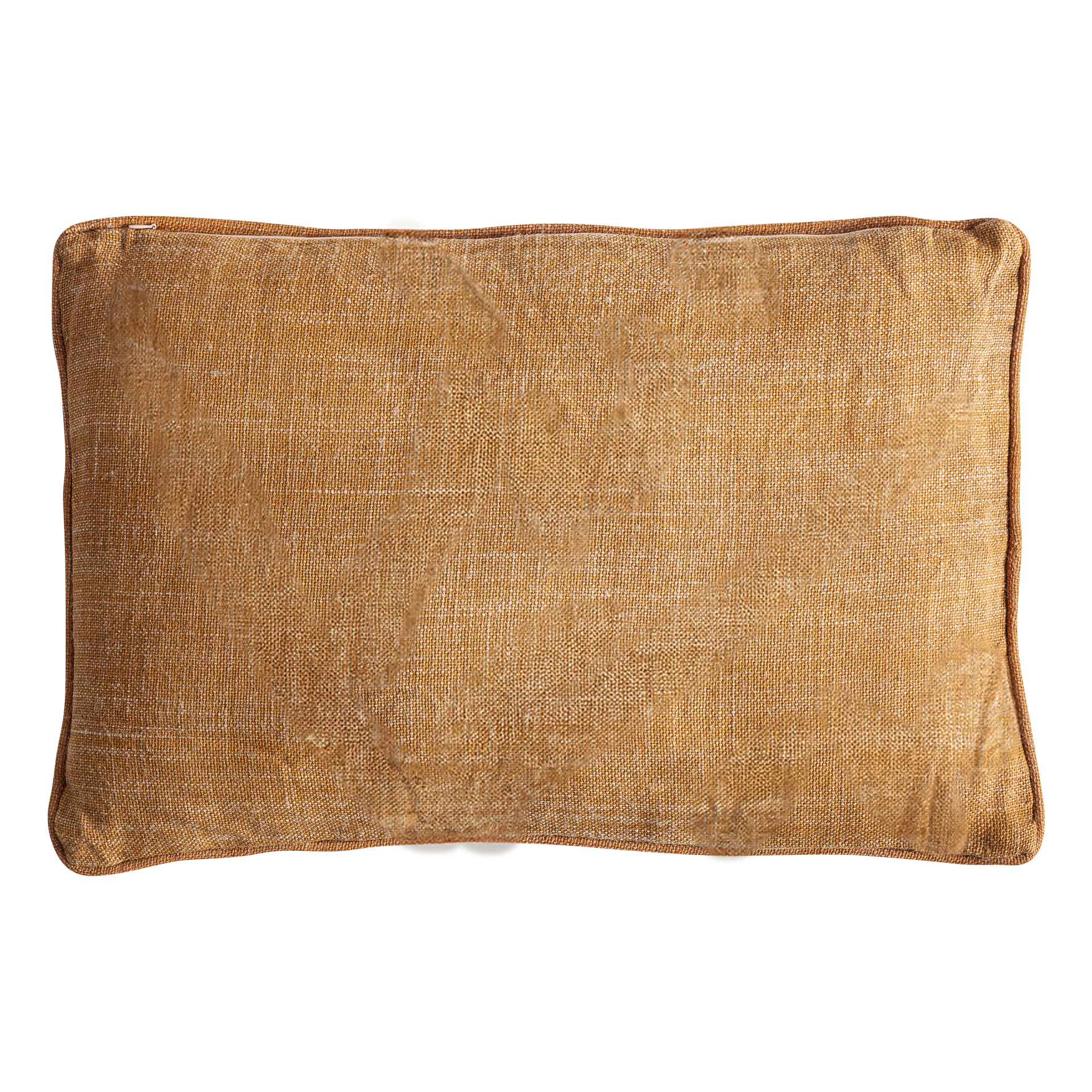 Cojín Osiris de estilo clásico fabricado en yute en color beige combinado con fibra natural en color ocre. Producto desenfundable.