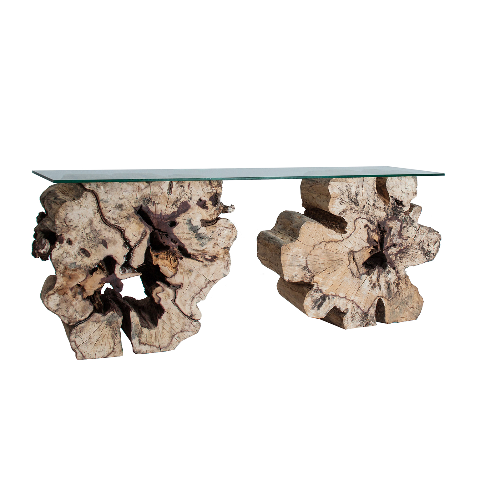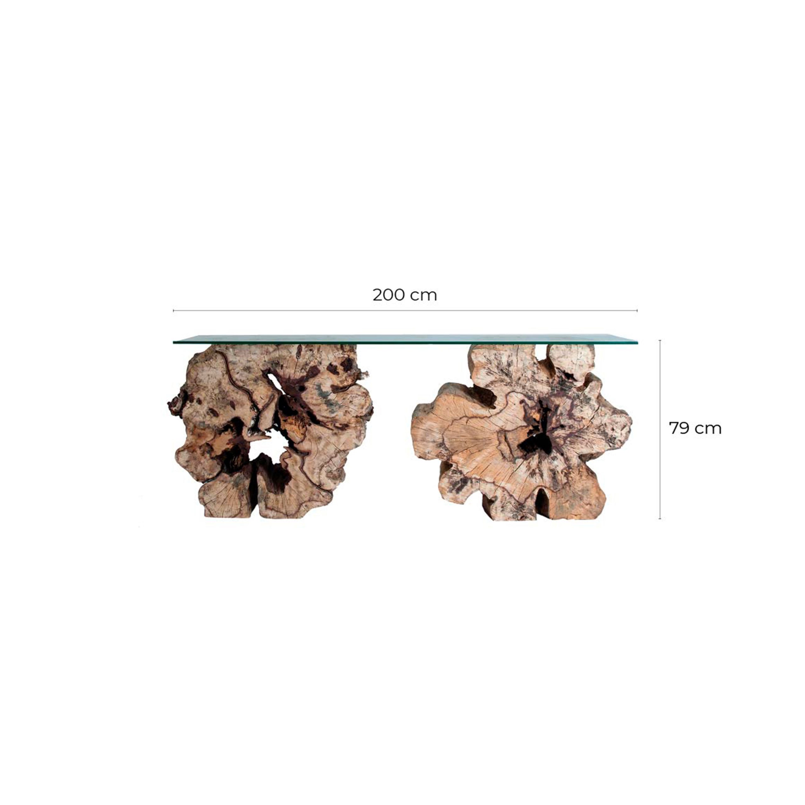 Consola beyneu de estilo contemporáneo fabricado en madera tropical en color marrón. Producto desmontable.