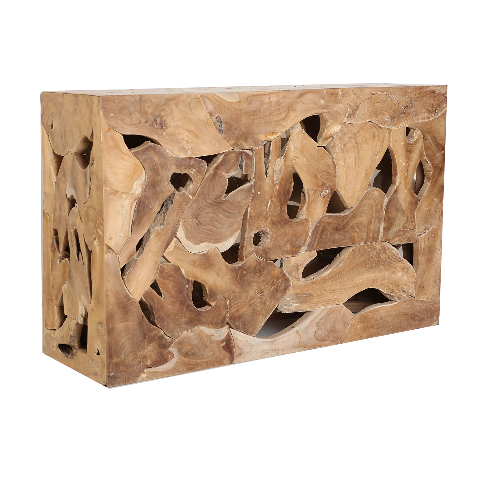 Consola Urama de estilo étnico fabricado en madera de teka en color marrón.