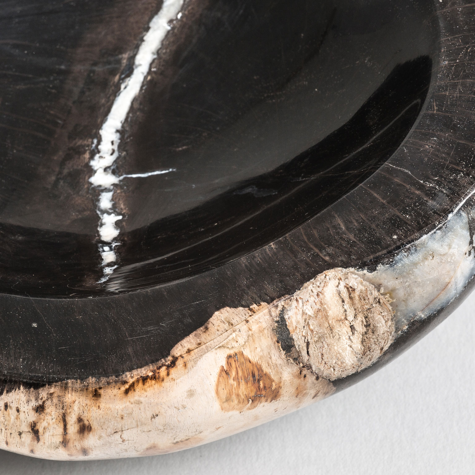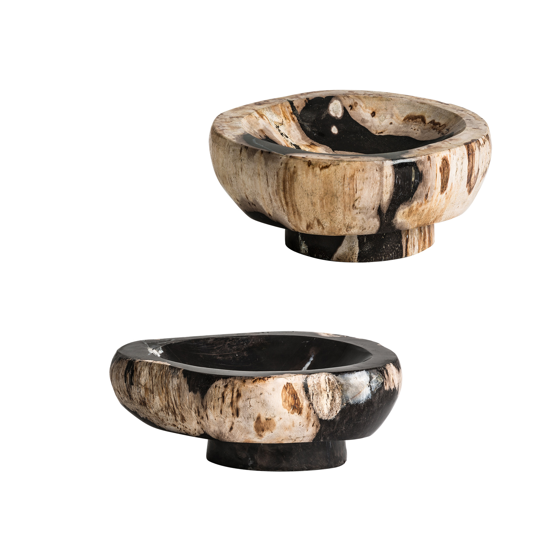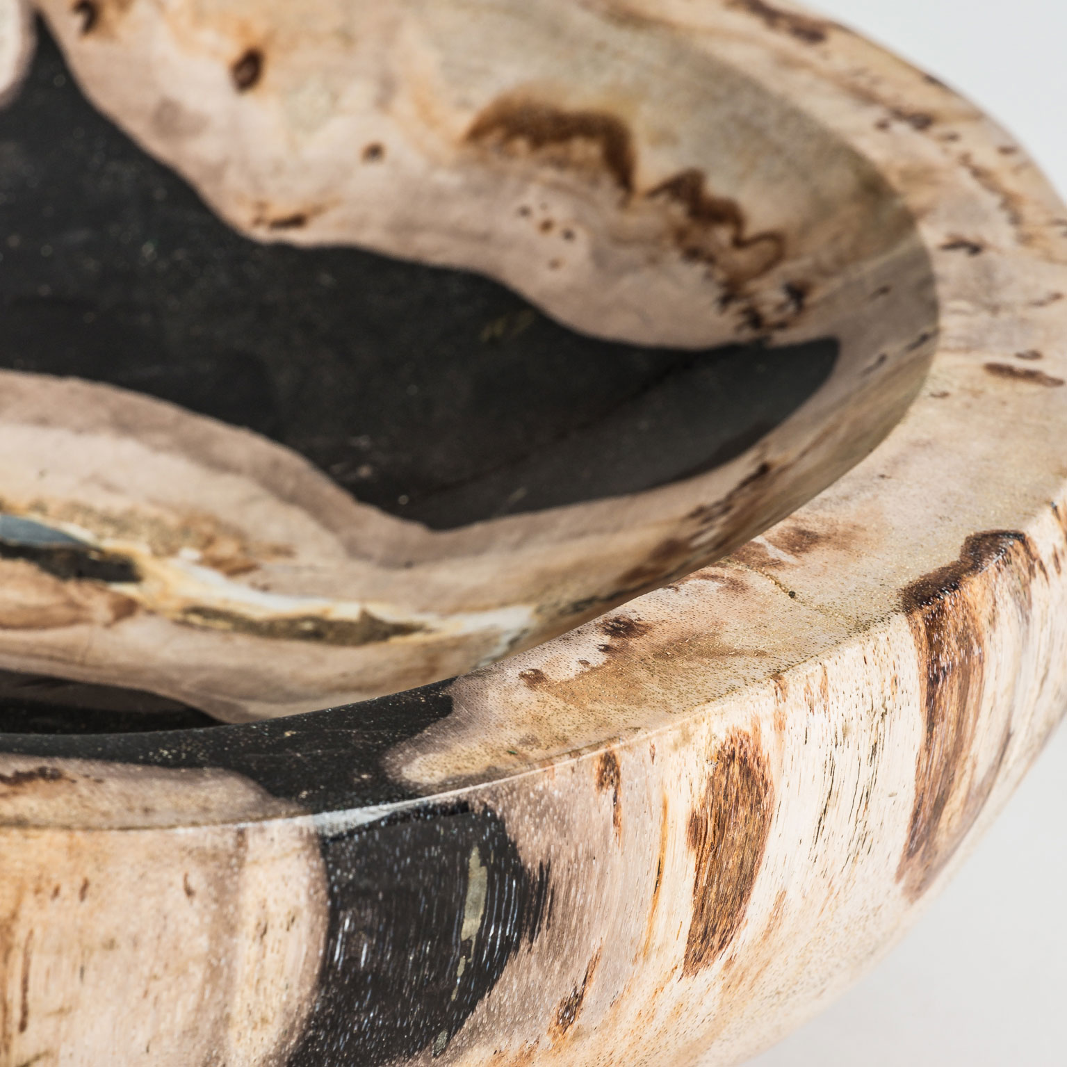 Cuenco de estilo étnico fabricado en madera petrificada en color multicolor con acabado envejecido.