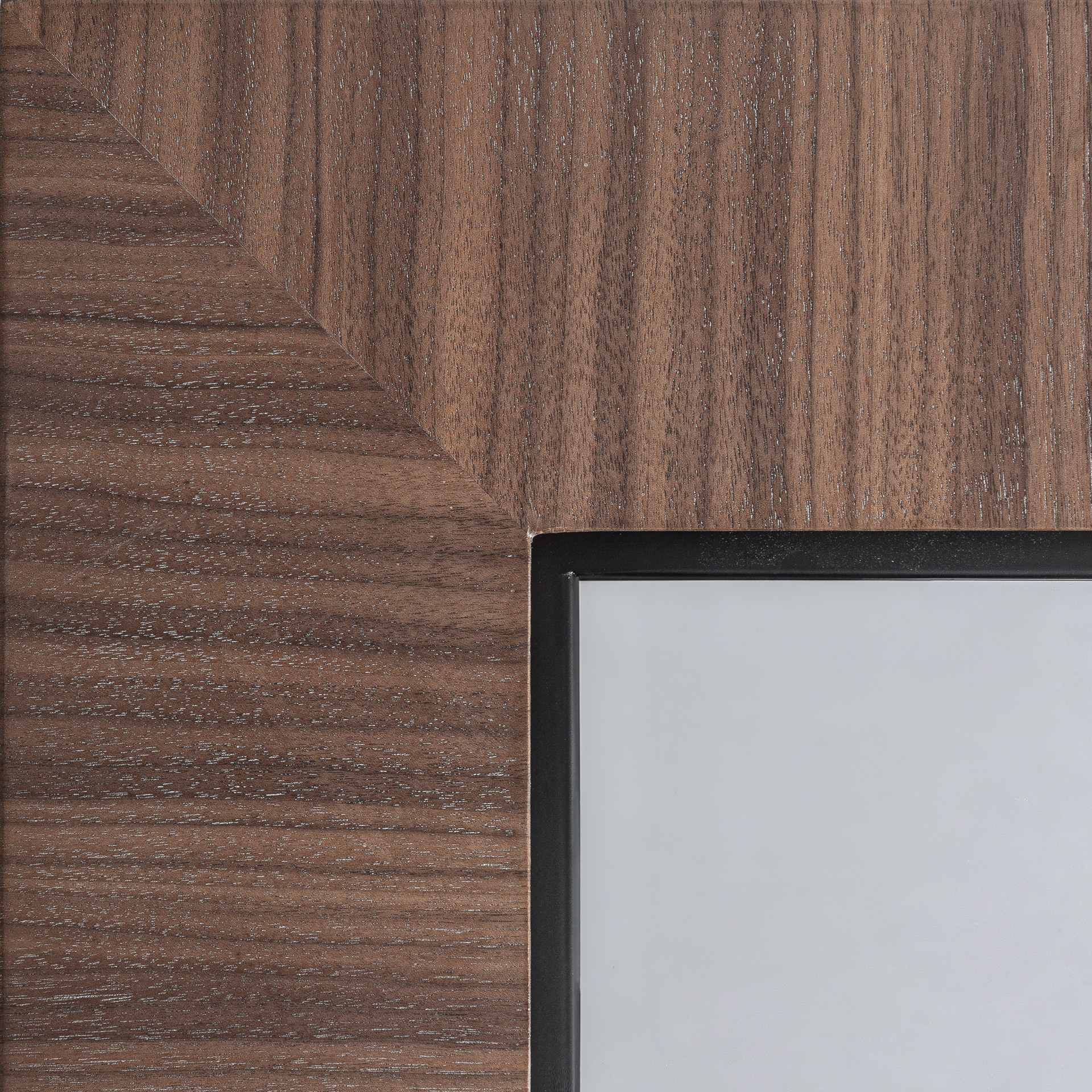 Espejo Rhein de estilo colonial fabricado en espejo combinado con madera nogal en color marrón y madera dm en color marrón.