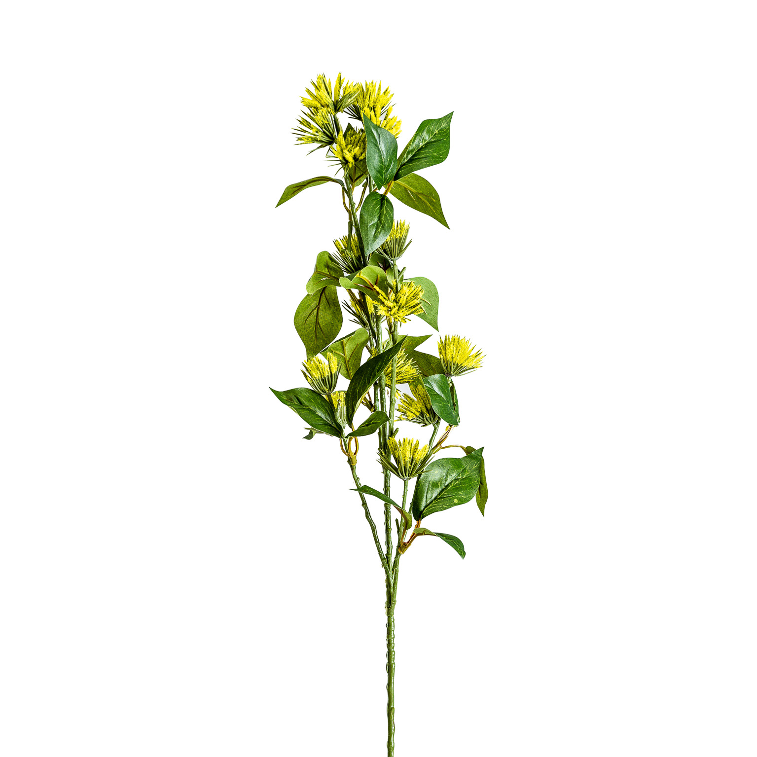 Flor de estilo clásico fabricado en plástico en color amarillo combinado con poliéster.