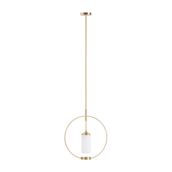 Lámpara de colgar Samha de estilo art deco fabricado en cristal en color marfil combinado con acero en color oro con acabado viejo. Producto desmontable.