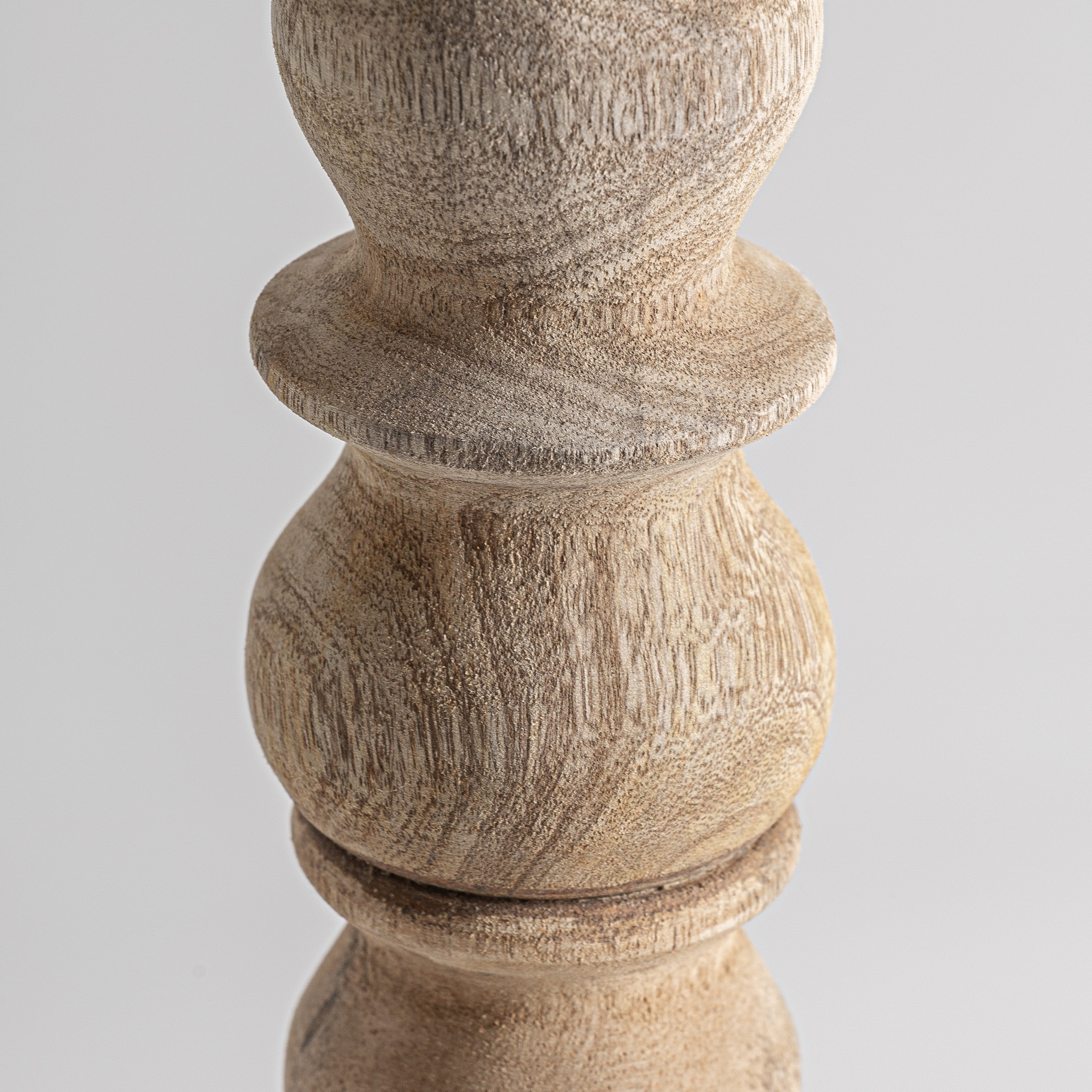 Lámpara de pie Heilbron de estilo rústico fabricado en madera de mango en color marrón claro combinado con algodón en color beige. Producto desmontable.
