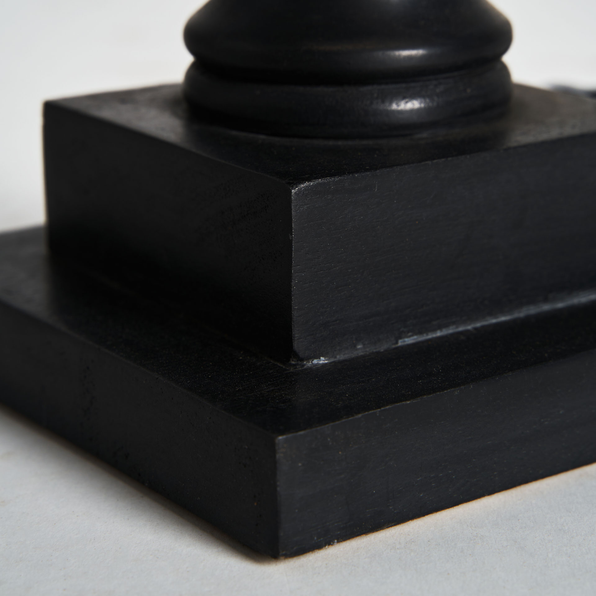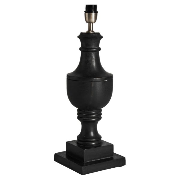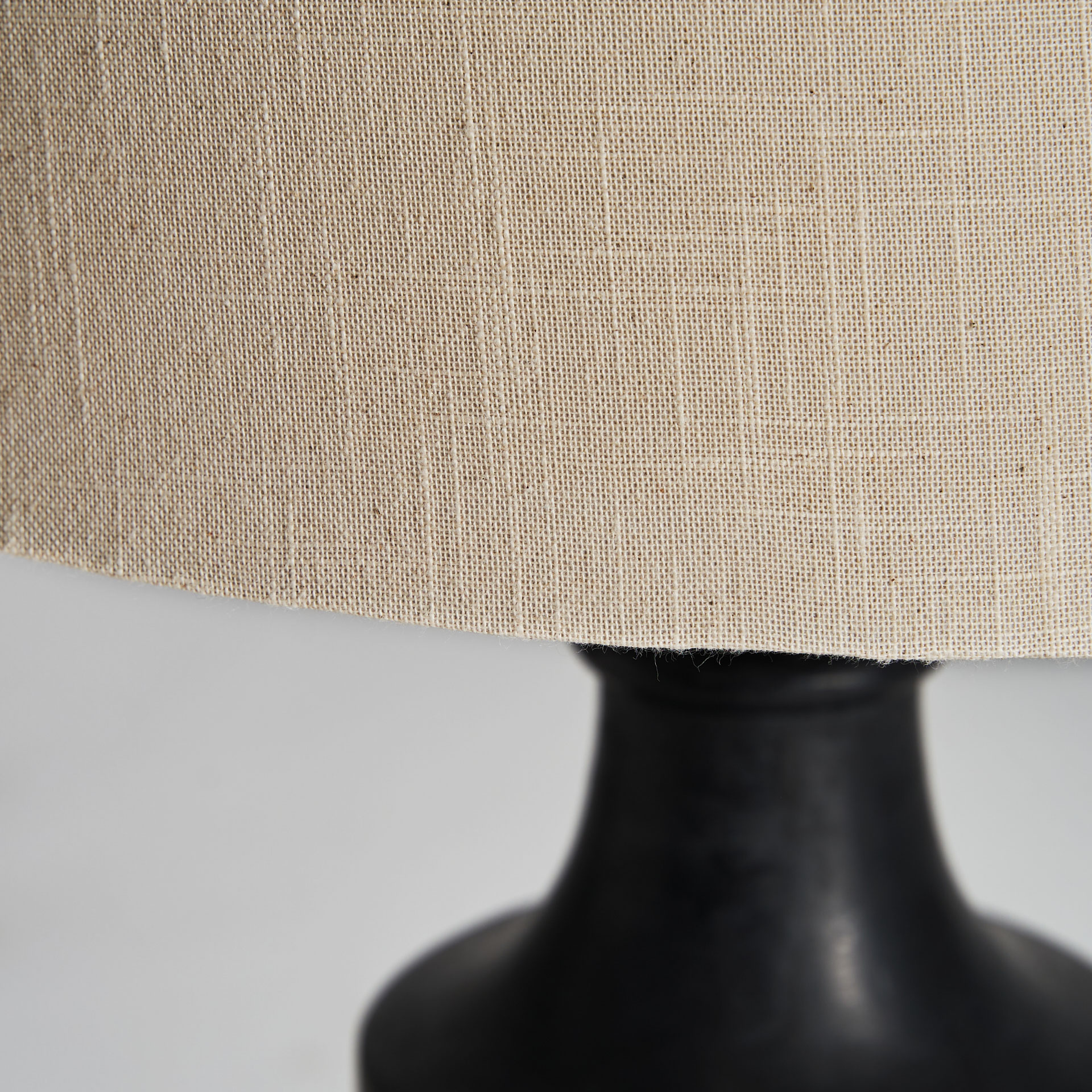 Lámpara de sobremesa de estilo provenzal fabricado en madera de mango en color negra combinado con algodón.