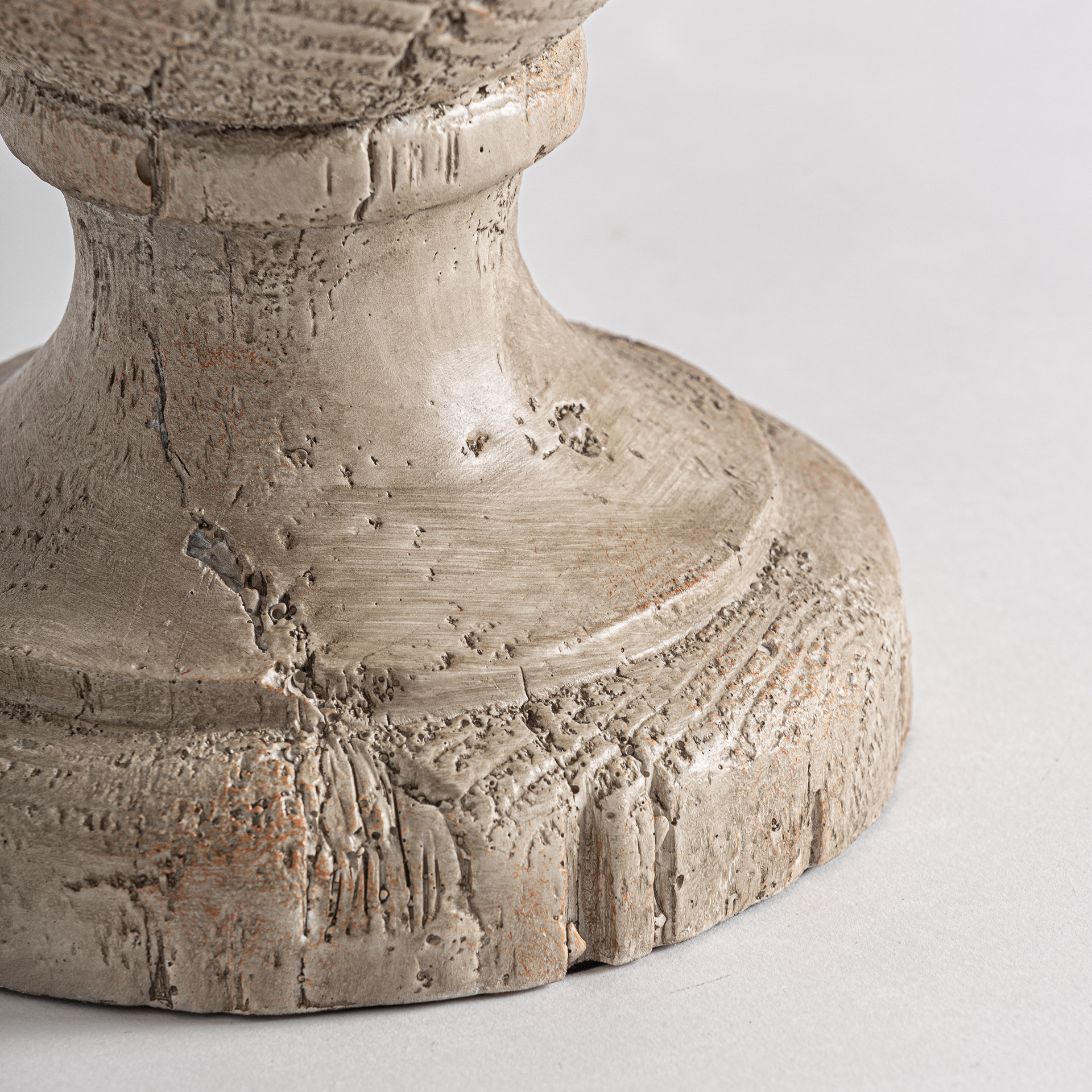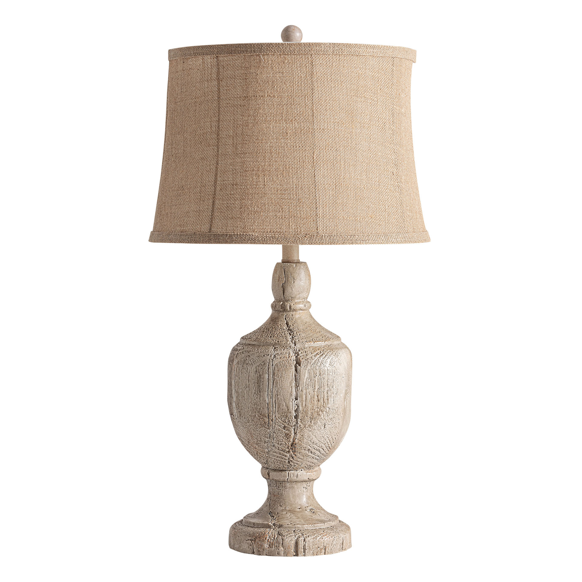 Lámpara de sobremesa de estilo provenzal fabricado en resina en color marrón con acabado envejecido combinado con yute. Producto desmontable.
