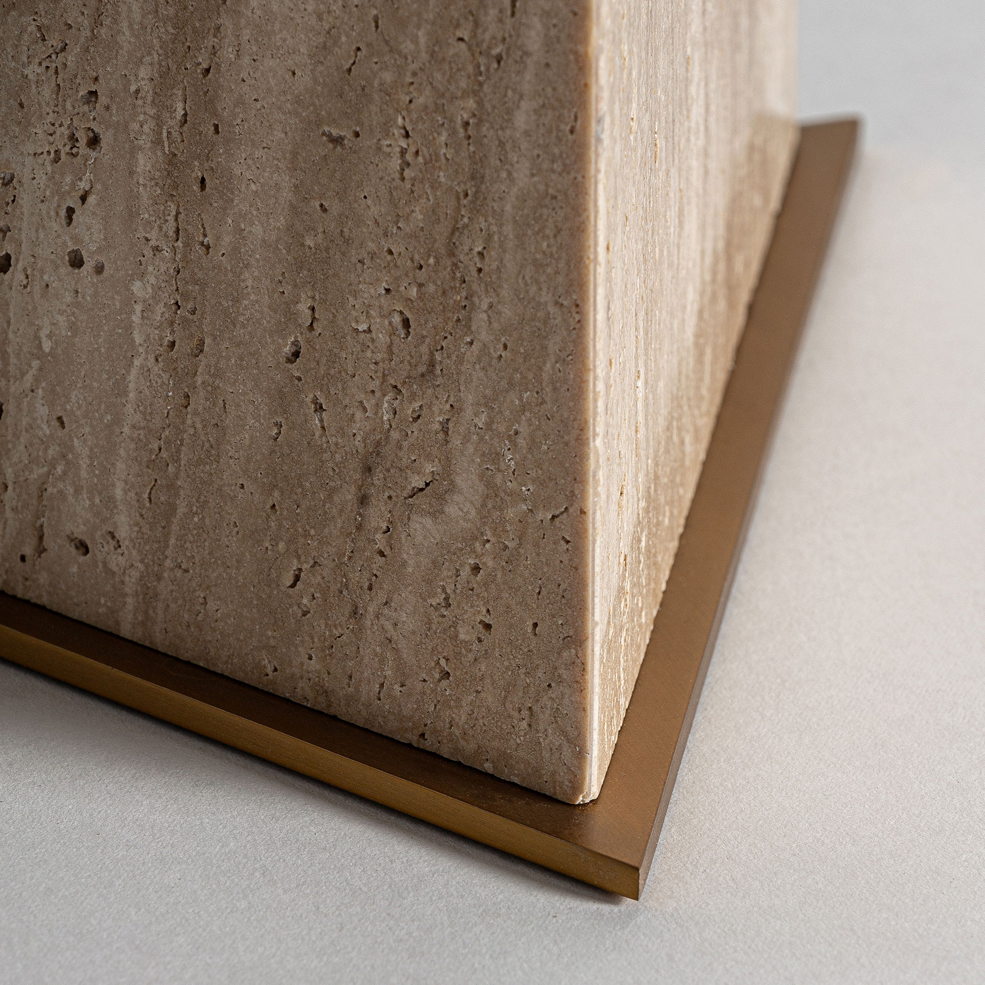 Lámpara de sobremesa Tetbury de estilo art deco fabricado en mármol en color beige combinado con hierro en color oro con acabado bronce y algodón bouclé en color blanco. Producto desmontable.