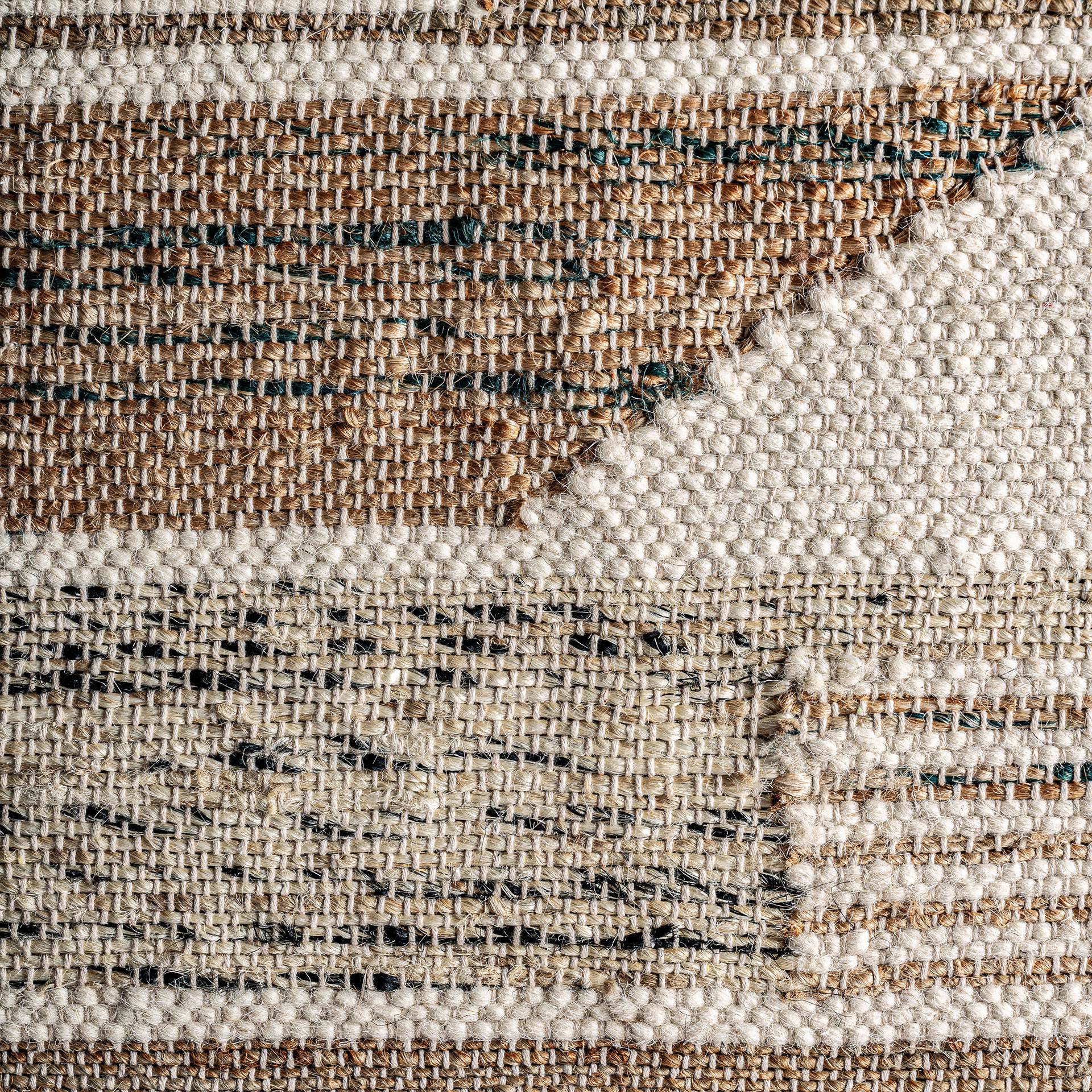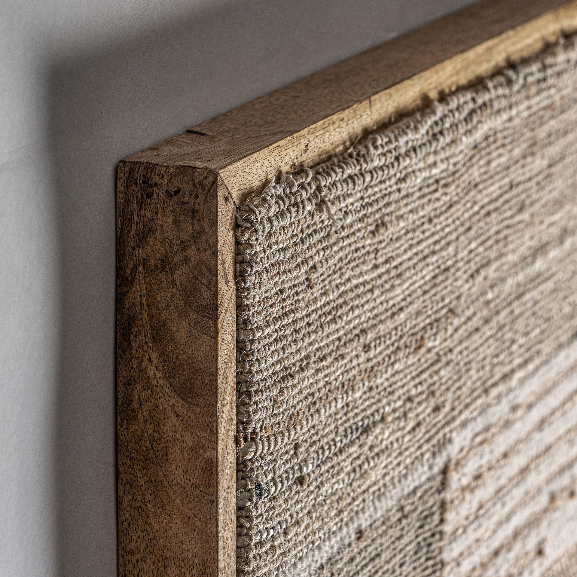 Lienzo Rubje de estilo contemporáneo fabricado en yute en color tonos claros combinado con algodón y madera de mango.