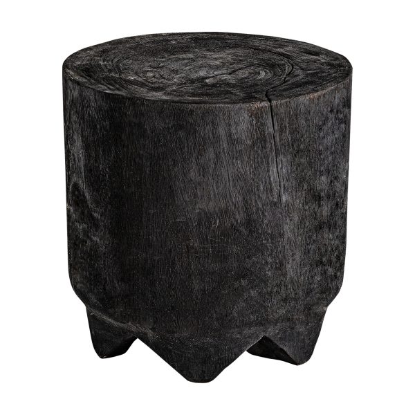 Mesa auxiliar Kepoi de estilo étnico fabricado en madera suar carbonizada en color negro con acabado envejecido.