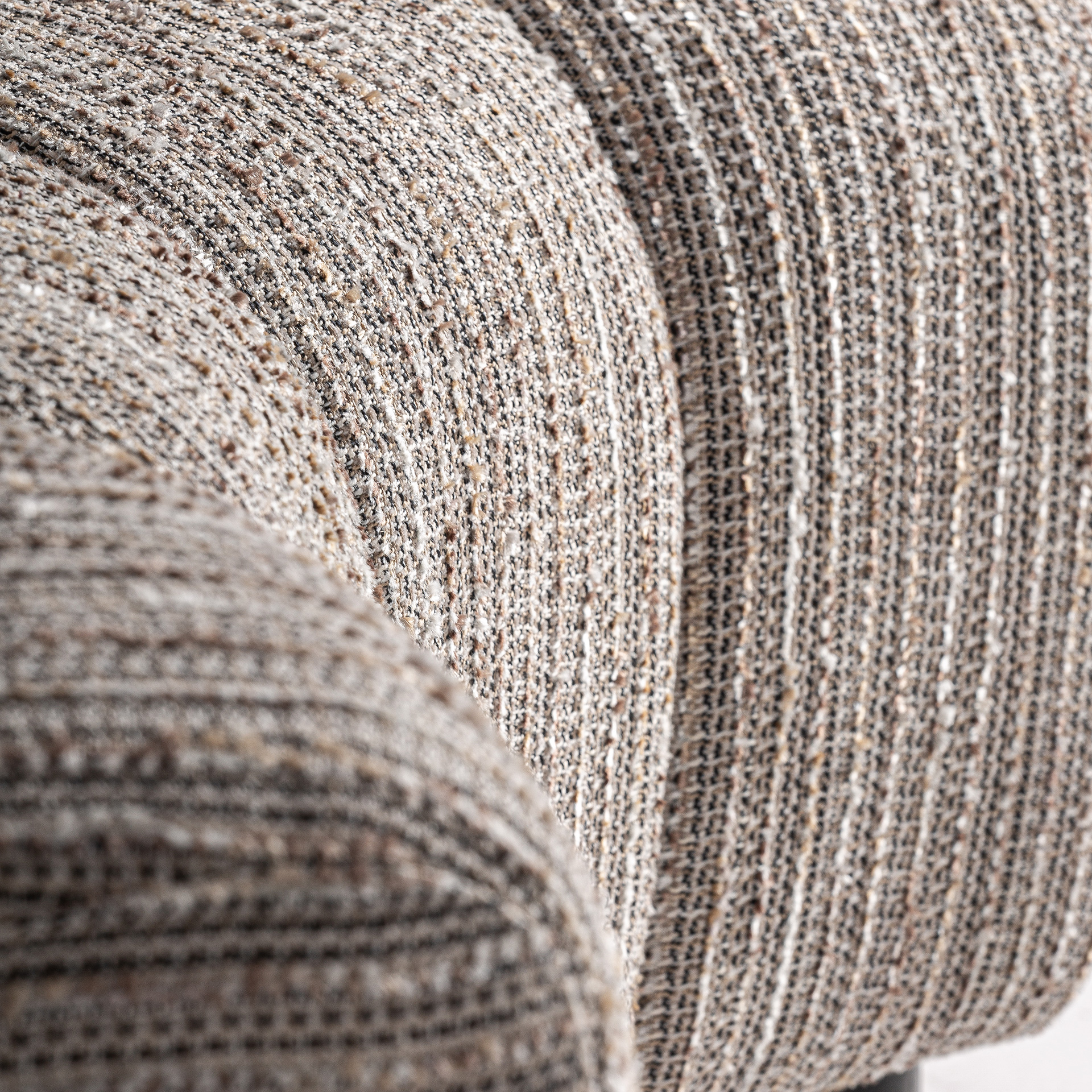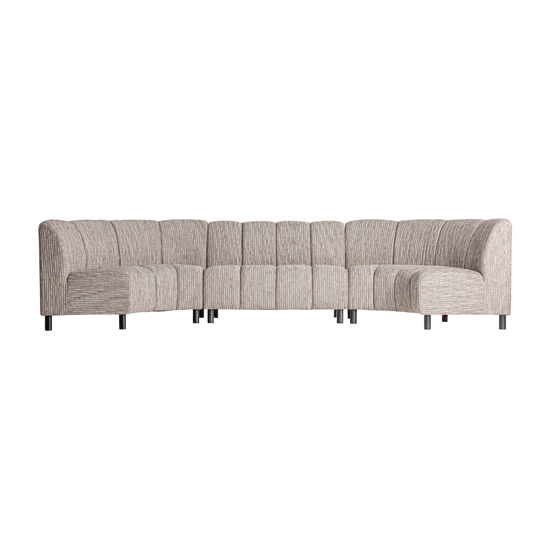 Módulo sofá central Brouville de estilo contemporáneo fabricado en poliéster en color beige con acabado jaspeado combinado con espuma en color blanco y madera de caucho en color negro.