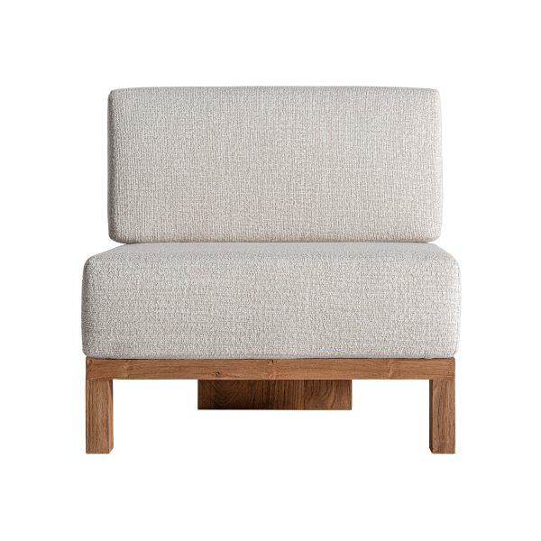 Módulo sofá central testa de estilo colonial fabricado en madera de teka reciclada en color marrón con acabado natural combinado con polipropileno reciclado en color tonos en marrón con acabado jaspeado y espuma. Producto desmontable desenfundable.