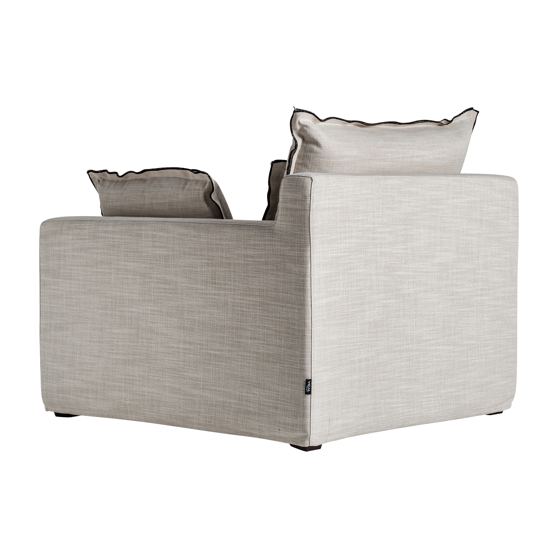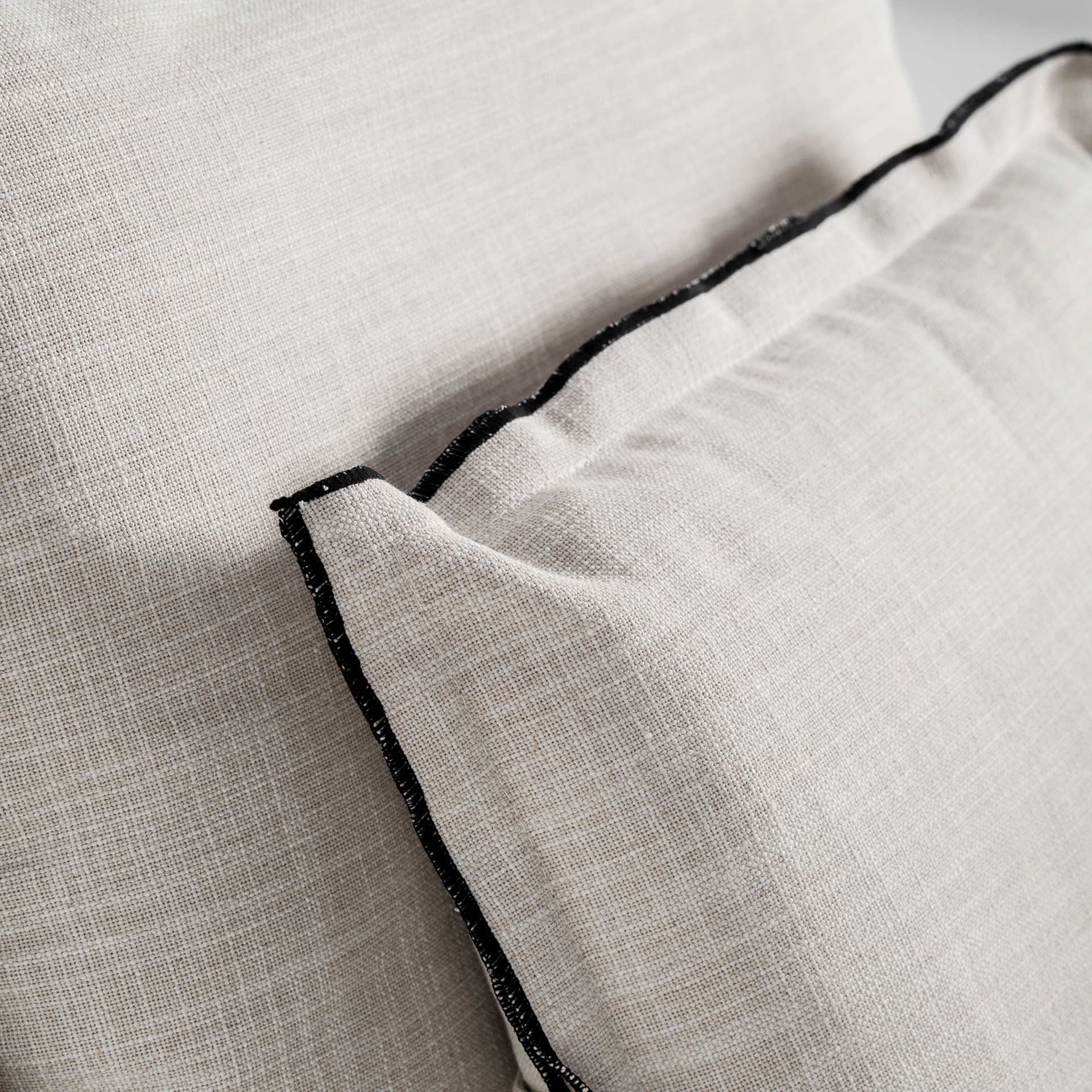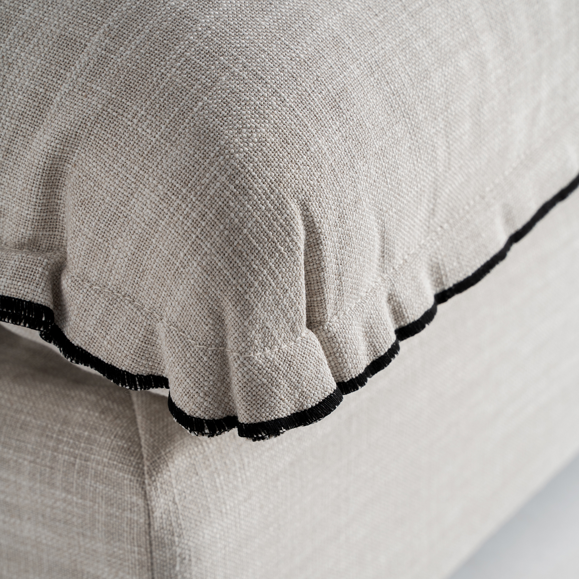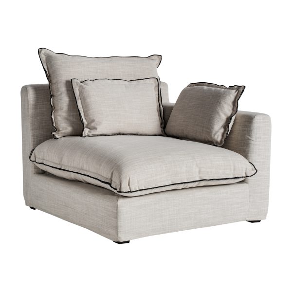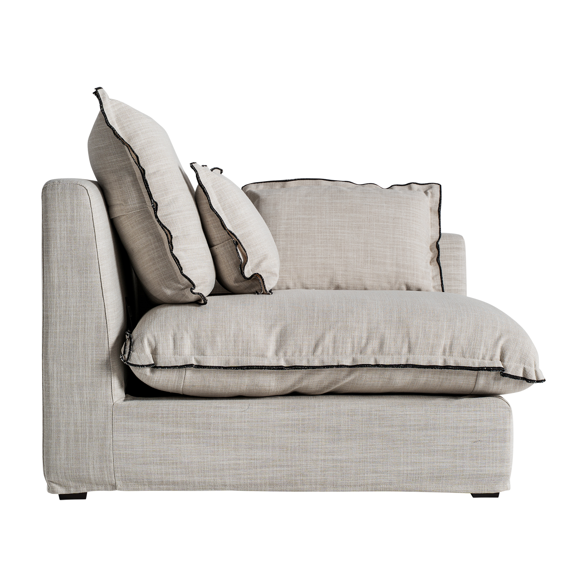 Módulo sofá esquinero Bief de estilo clásico fabricado en poliéster en color blanco roto combinado con madera de pino en color negro y espuma. Relleno: 65% espuma 20% fibra 10% pluma de pato 5% entretela. Producto desenfundable. Compatible con: 35594 35596 35597.