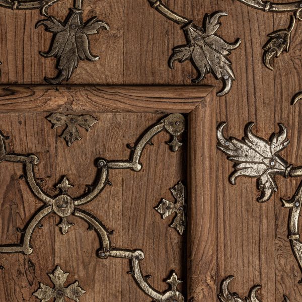 Panel decorativo de estilo étnico fabricado en madera de mango en color marrón con acabado envejecido.