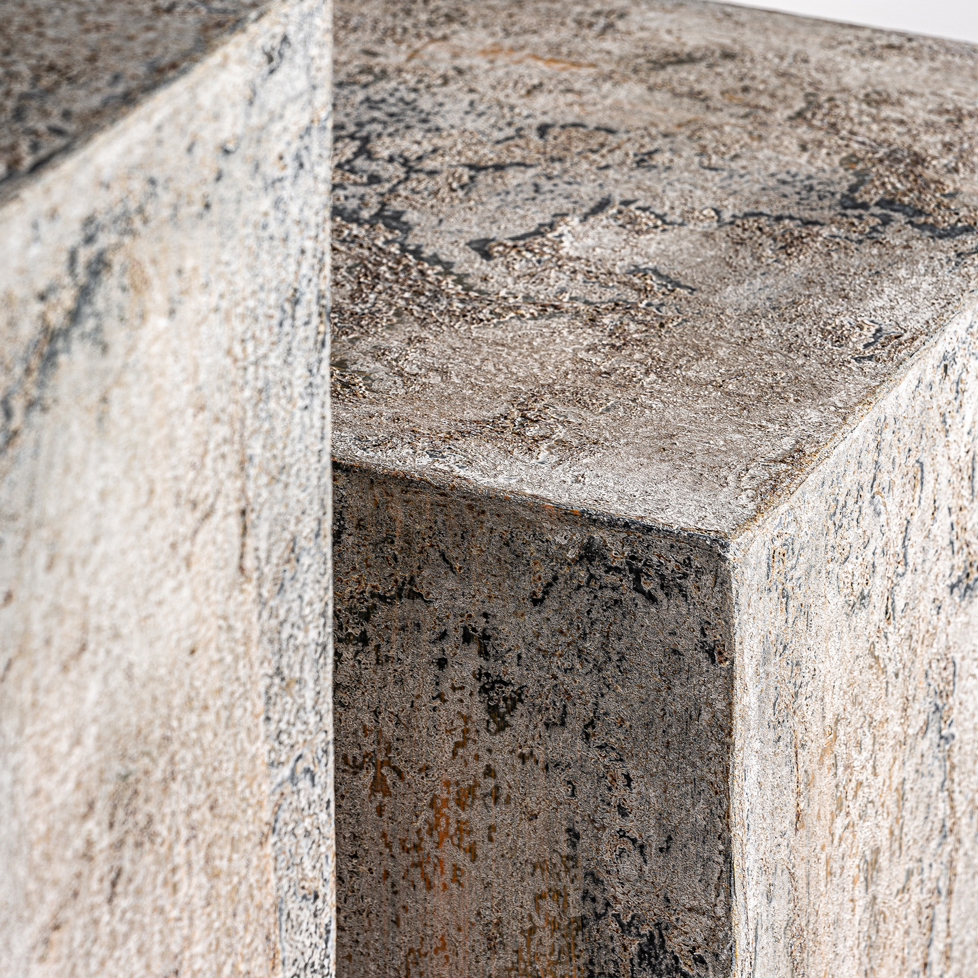 Peana j 2 Arvit de estilo industrial fabricado en terracota en color tonos neutros con acabado patina. Producto apilable.