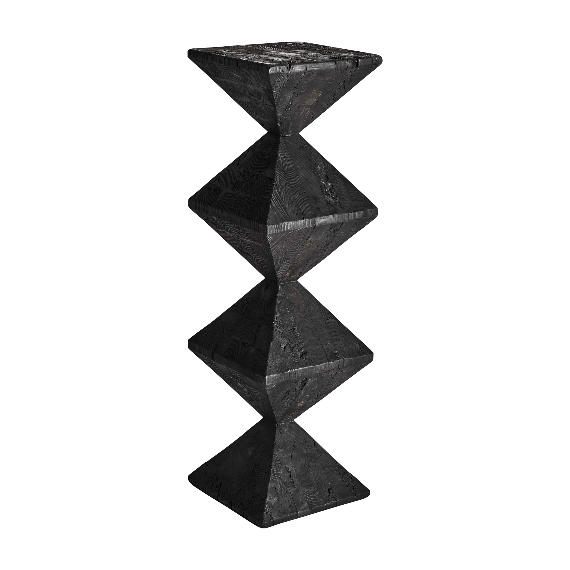 Peana Vievy de estilo art deco fabricado en madera de pino reciclado en color negro.