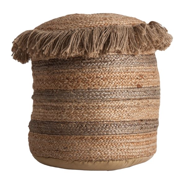 Puff Tassarolo de estilo vintage fabricado en yute en color marrón combinado con algodón.