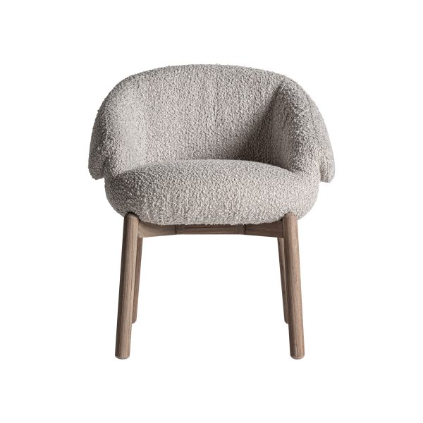 Silla Jacquard de estilo contemporáneo fabricado en madera de olmo en color marrón combinado con poliéster en color beige.