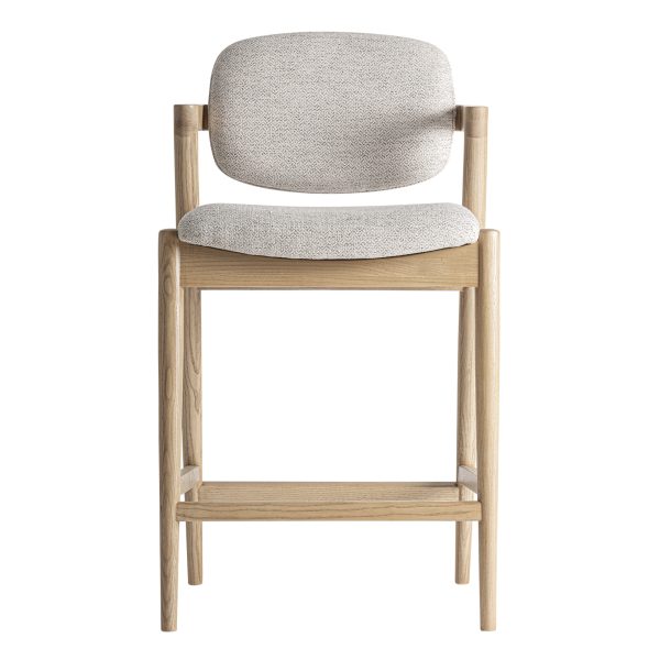 Taburete Namur de estilo contemporáneo fabricado en madera de fresno en color marrón claro combinado con poliéster en color beige.