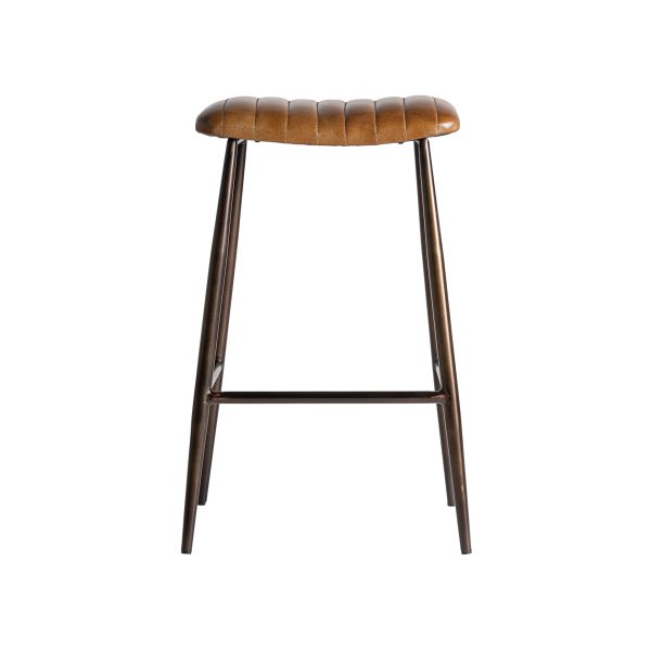 Taburete Snasa de estilo vintage fabricado en piel en color marrón combinado con hierro en color negro.