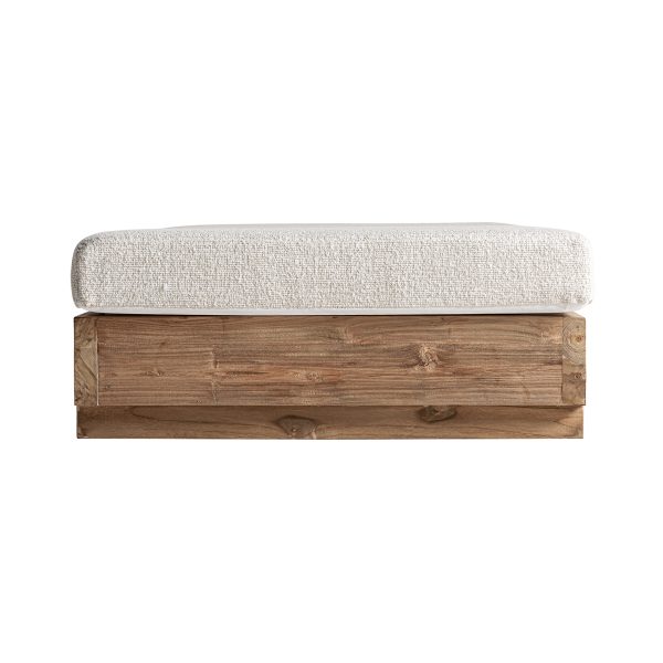 Tumbona pure de estilo colonial fabricado en madera de teka reciclada en color marrón combinado con polipropileno reciclado en color blanco. Producto desmontable plegable desenfundable.