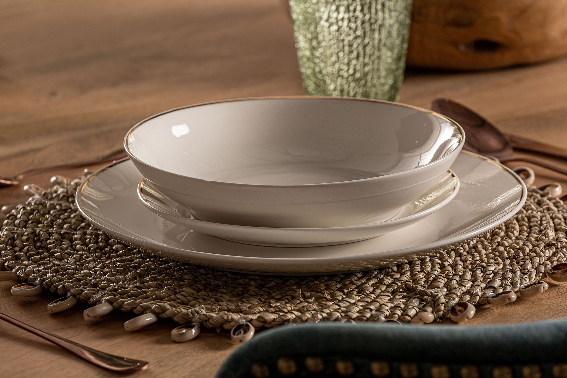 Vajilla j 18 Greg de estilo art deco fabricado en porcelana en color blanco en color oro.